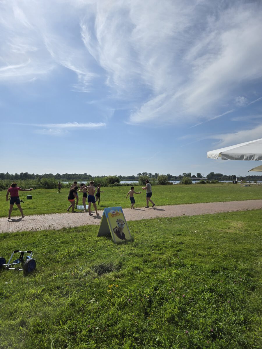 Wij hebben ons privΓ© terras bij Strand Zuid, met uitzicht op het Oldambtmeer.
