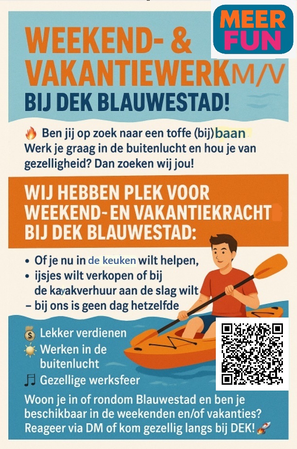 9 juni 2025📣 Vacature: Medewerker Kayakverhuur & Outdoor Activiteiten bij DEK Blauwestad